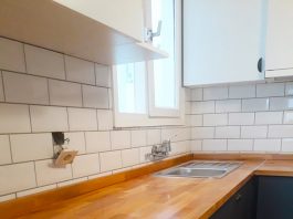Göztepe’de Beyaz Membran Mutfak Dolabı Huş Tezgah Uyumu