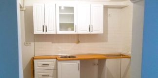 Göztepe’de Beyaz Membran Mutfak Dolabı Huş Tezgah Uyumu